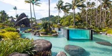 Stay in the largest overwater villas in the South Pacific, starting at 1,550 square feet, and revel in the turquoise blue waters visible from the glass panel floors. For ultimate privacy, reserve a secluded beach villa surrounded by palms trees.